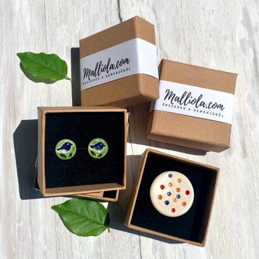 A természetes papírdobozunkban rejlik majd a meglepetés és a fekete belső bélés mégjobban  kiemeli a színes kerámia ajándékot.