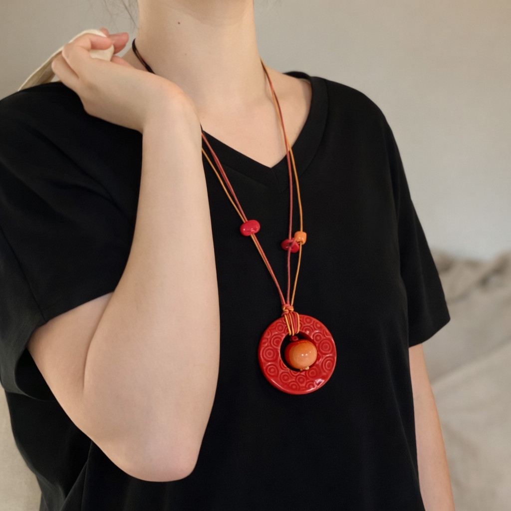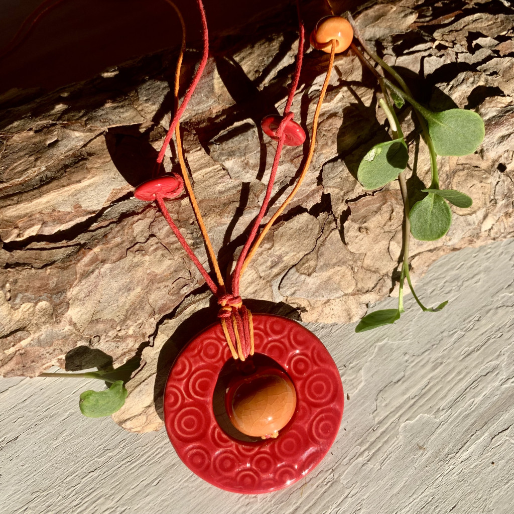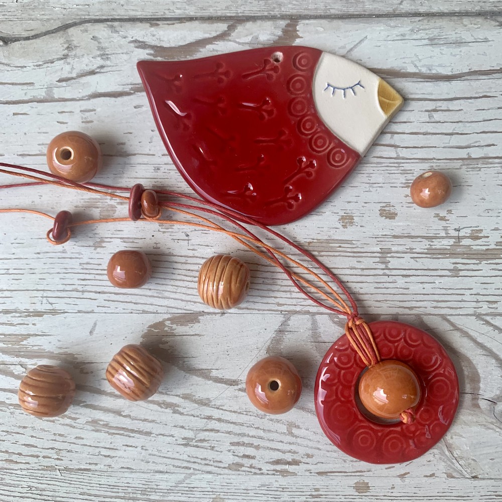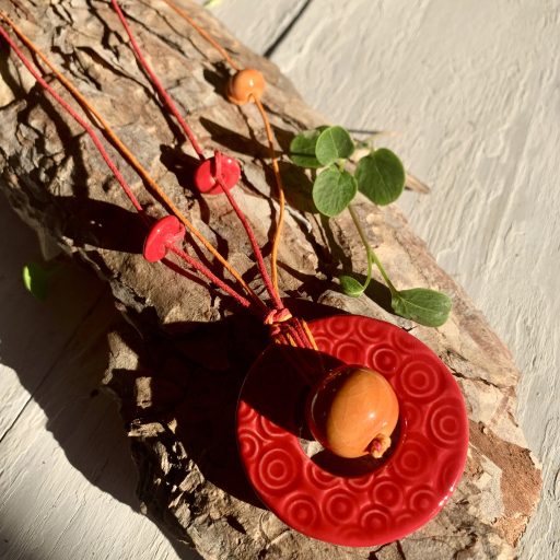 A nyaklánc medálján izzó piros kis virágok közé egy narancsos birs keveredett. Madárkák kedvence, most őszi színek kedvelőinek lehet igazán mesés ajándék.