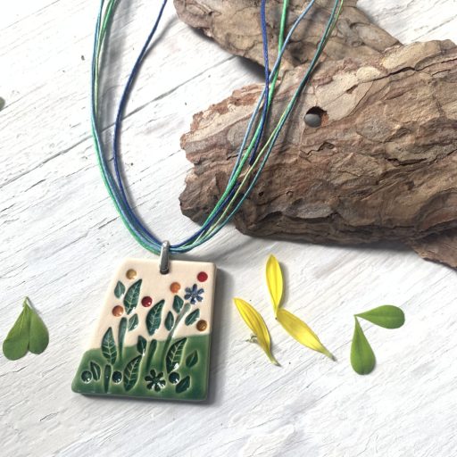 4x4,5 cm-es kerámia medál, 46 cm viaszolt zsinór, plusz 5 cm lánchosszabító