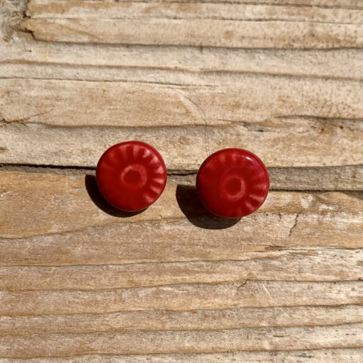 Ici-pici piros kör, virágos napocskával, vidáman vírit egy kis beszúrós fülbevalón.