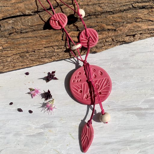 A rózsaszín kerámia nyakláncunk tökéletes ajándék a romantikus, vintage vagy bohém stílust kedvelőknek. Mintában, vagy színben találsz a nyaklánchoz illő gyűrűt és fülbevalót, ha tovább nézelődsz a Malliola ékszerek között.