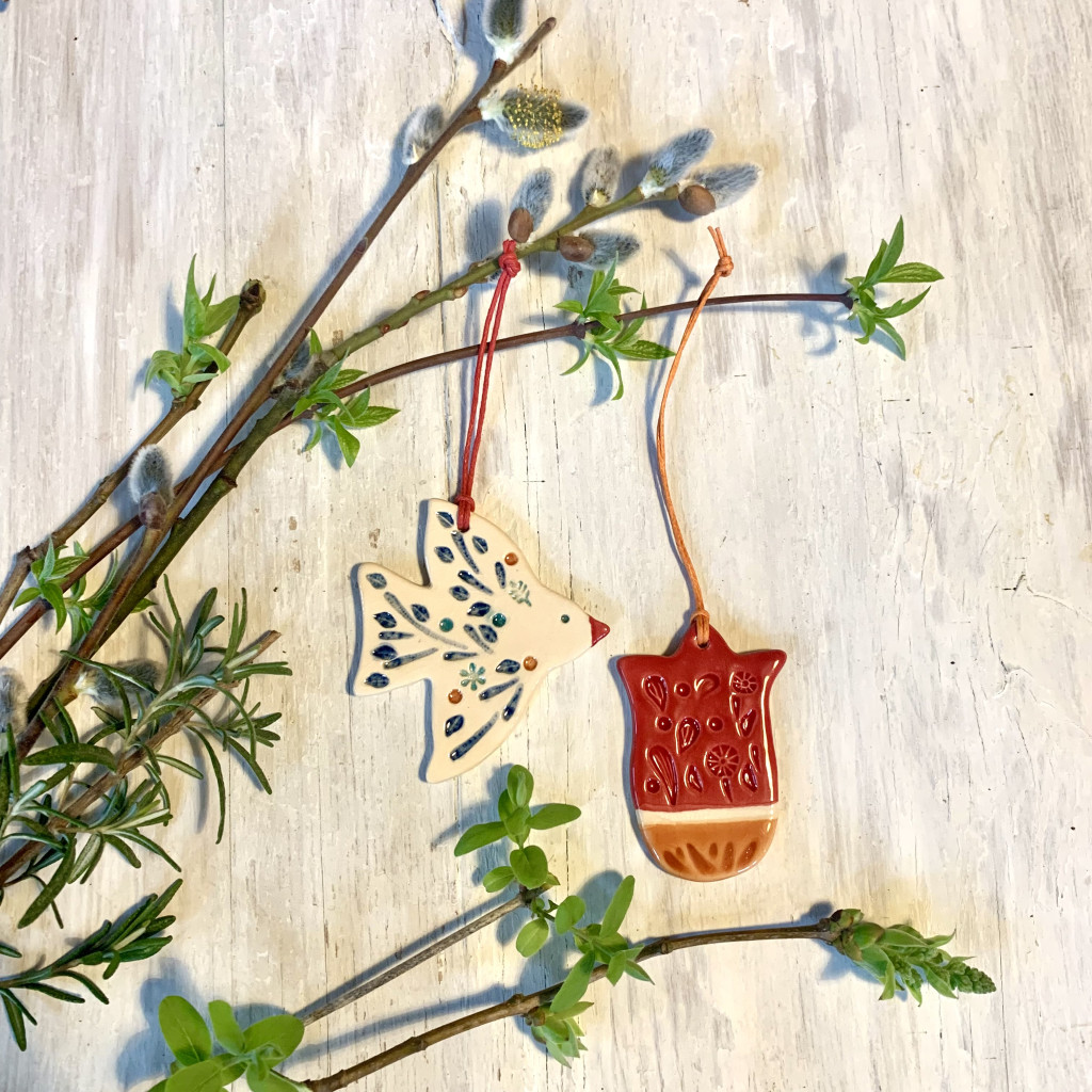 Egy szett, ami szívből szól: kézzel készült tulipános kerámia dísz és piros állítható karkötő együtt – a szeretet és az összetartozás gyönyörű jelképei Anyák napjára.