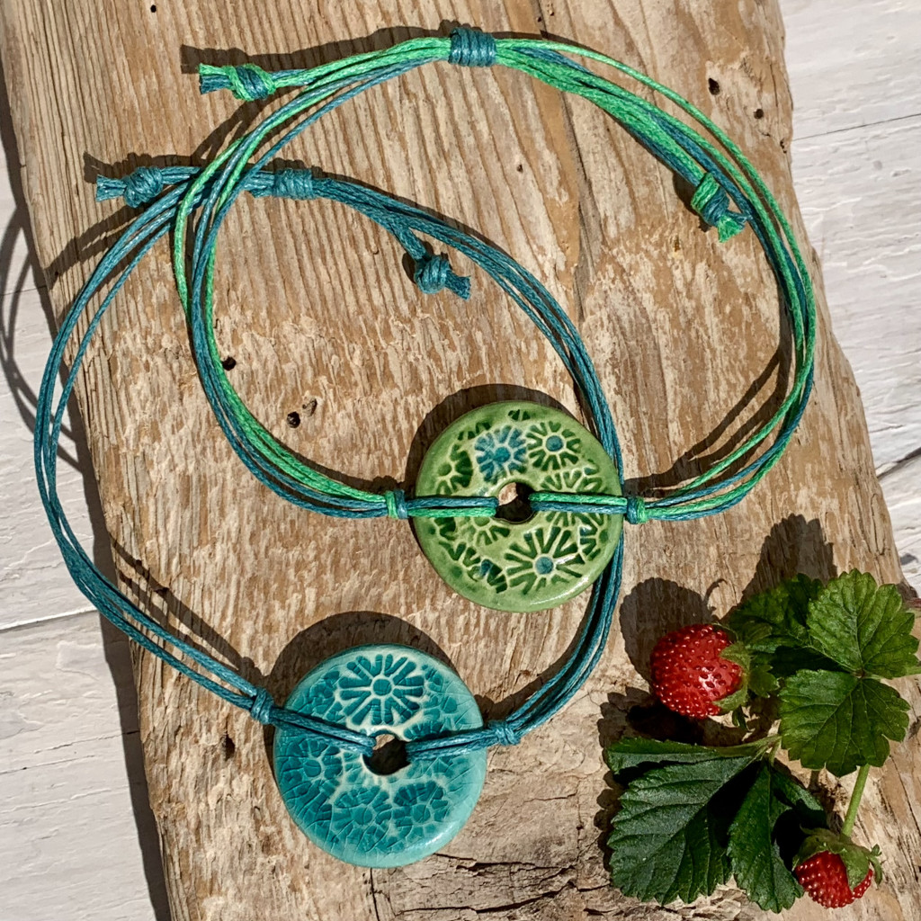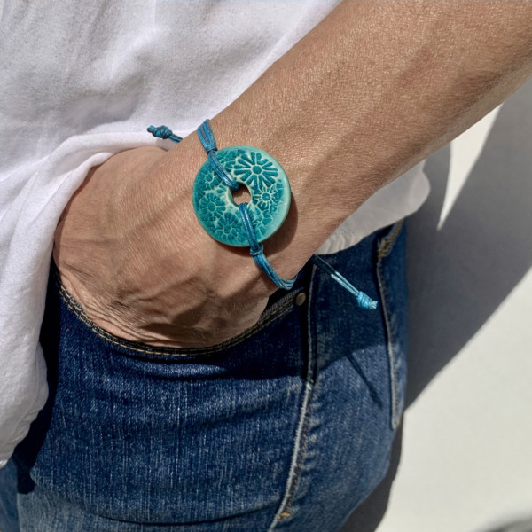 A karkötő csúszó csomóval záródik és ezzel kényelmesen beállítható a megfelelő méret is.