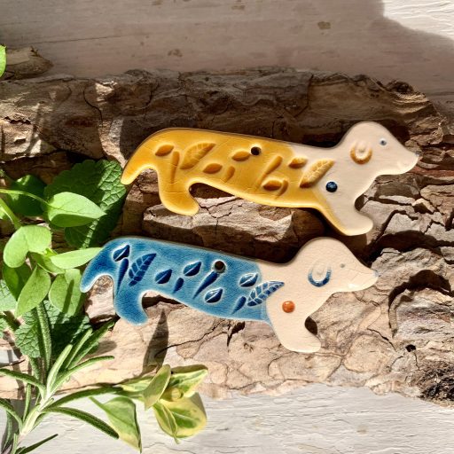 ceramic made by slabbing, stamping and hand molding