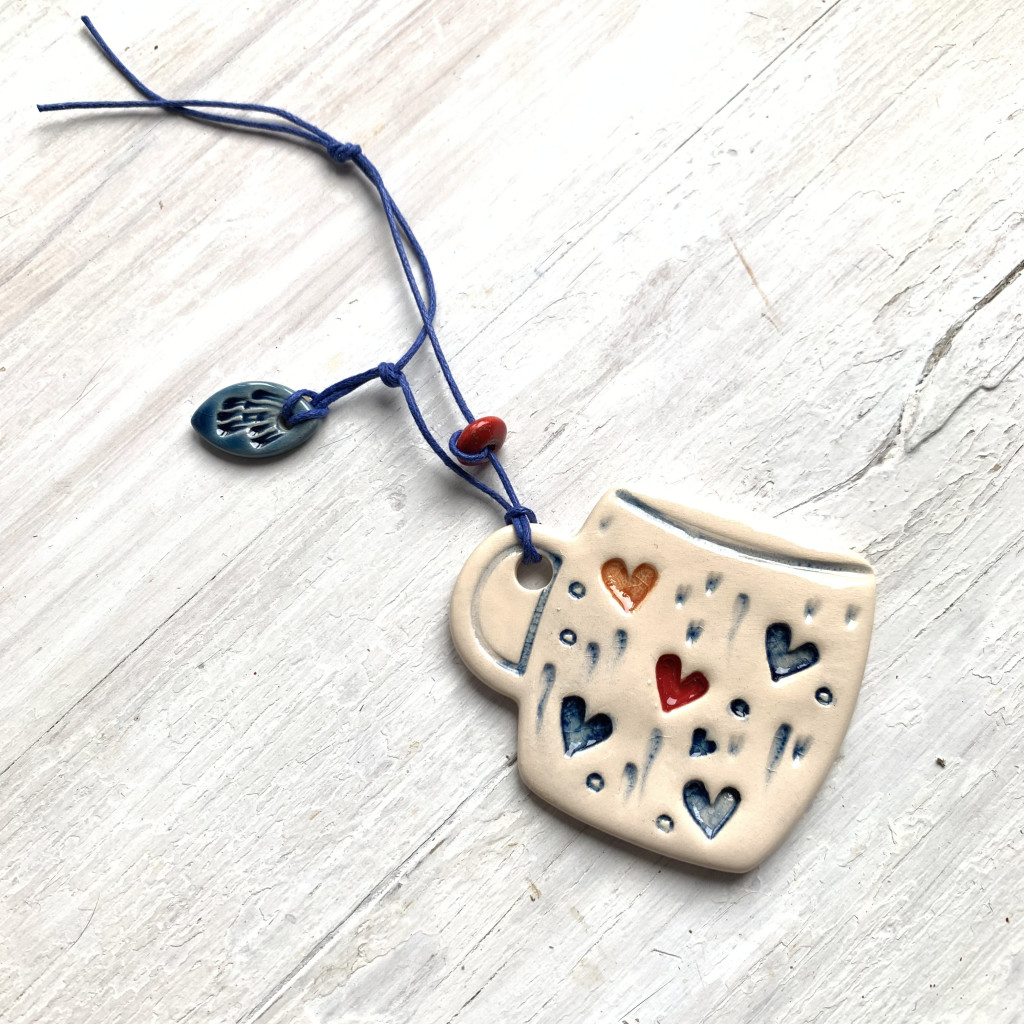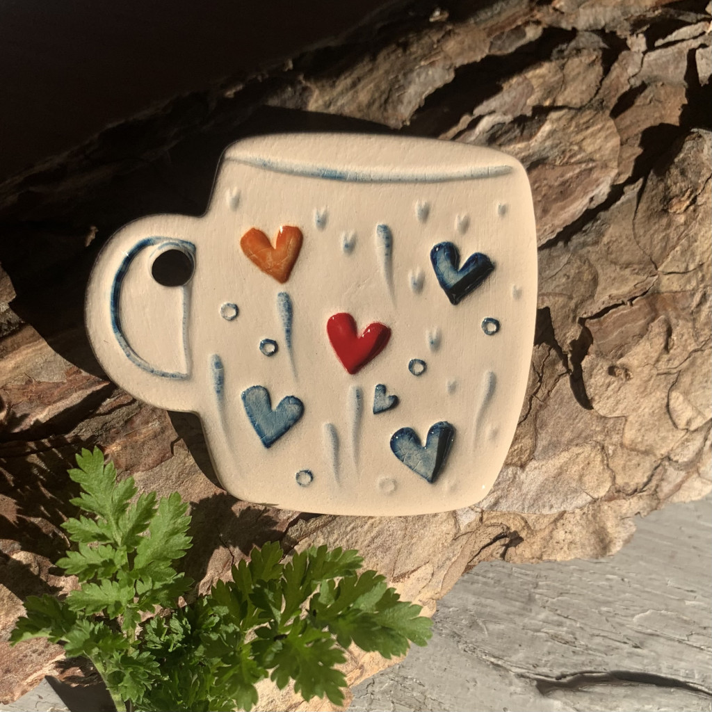 ceramic made by slabbing, stamping and hand molding