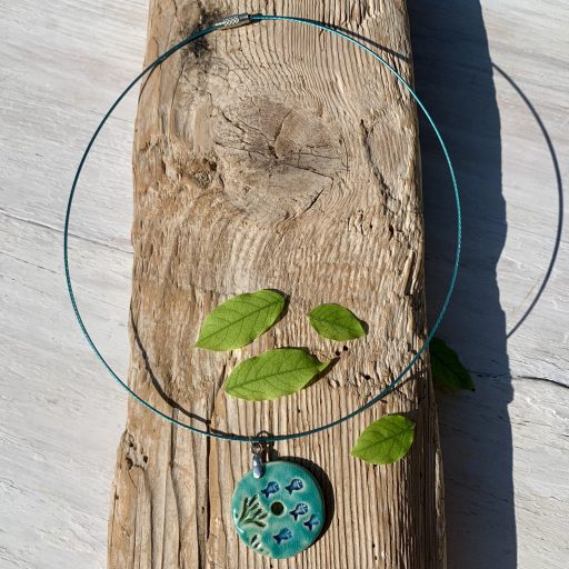 ceramic pendant measuring 4,5 cm in diameter, 90 cm string