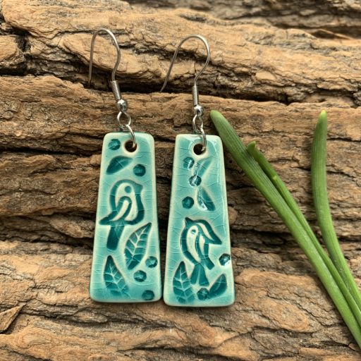Türkizzöld fülbevalónkon egy-egy kis madárka dalolászik.