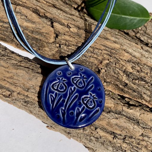 ceramic pendant measuring 5 cm in diameter, 46 cm string, plus 5 cm neklace extender