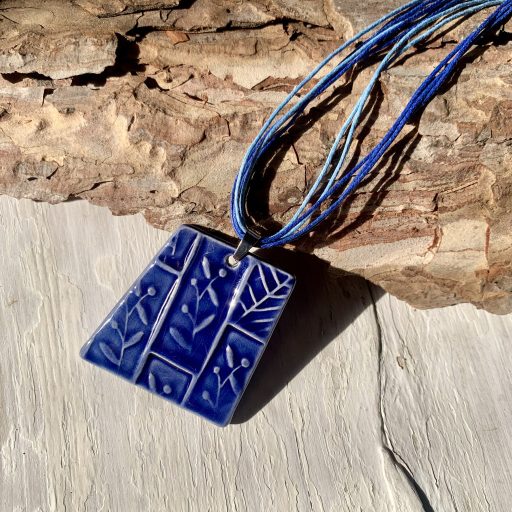 Smoldering traces of tiny flowers on this decorative square pendant.