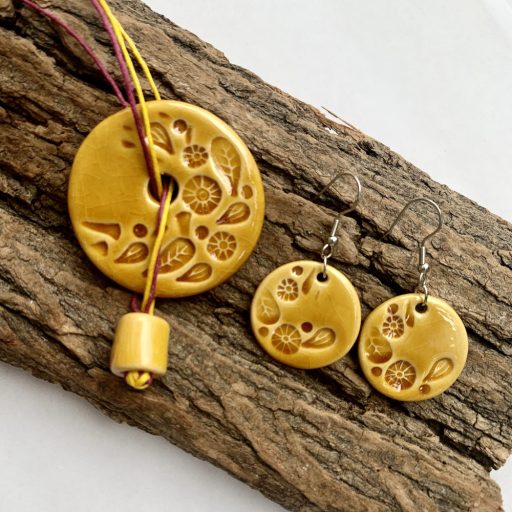 Necklace: ceramic pendant measuring 4,8 cm in diameter, 90 cm waxed string
