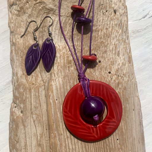Necklace: glazed ceramic pendant measuring 4,8 cm in diameter, 90 cm waxed string