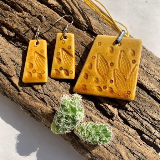 Fülbevaló: 3,2 cm hosszú mázas kerámia, orvosi acél alkatrészen