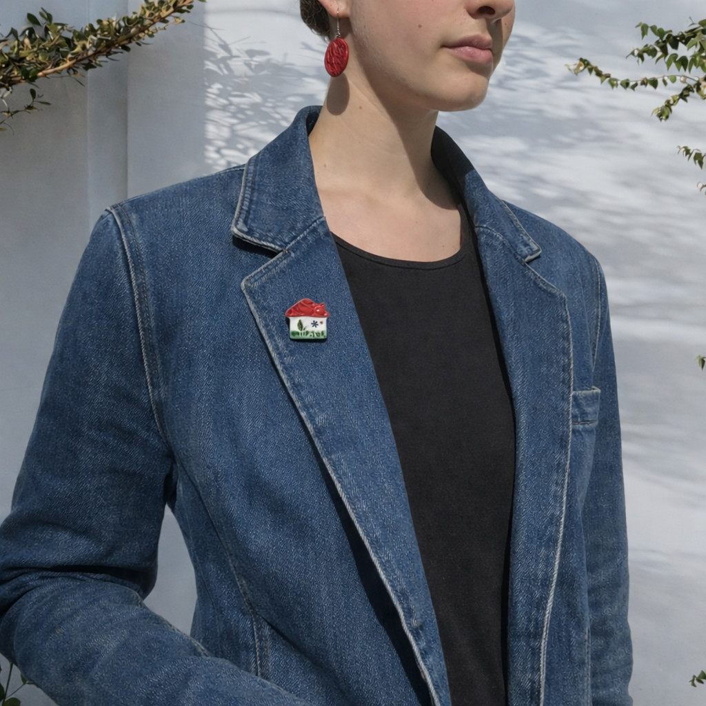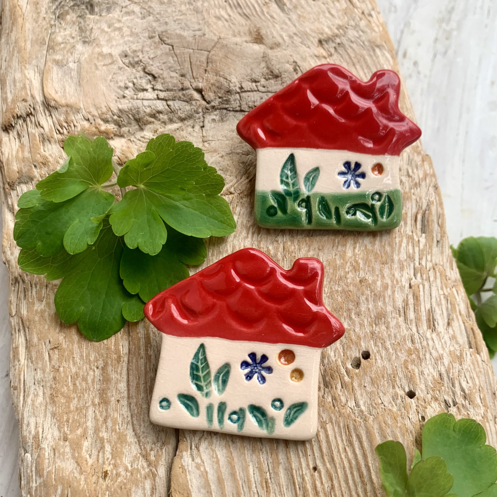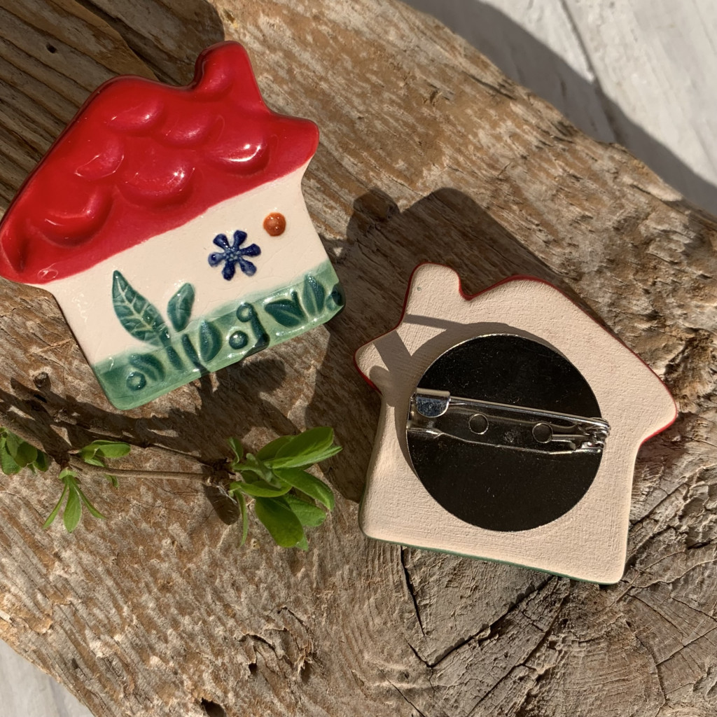 Egy apró házikó bross, amelynek az egyik változata ünnepi színekbe öltözött.Kedves, kézzel készült kerámia kitűző akár kokárda helyett – ha az ünnepen is a meleg, otthonos hangulatot választanád.
